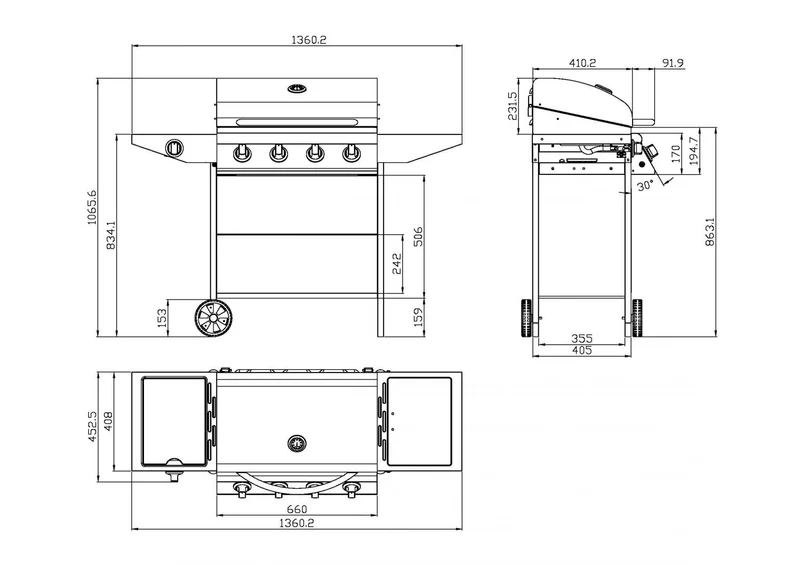 Dimensions : Taille Barbecue : 1360×530×1055