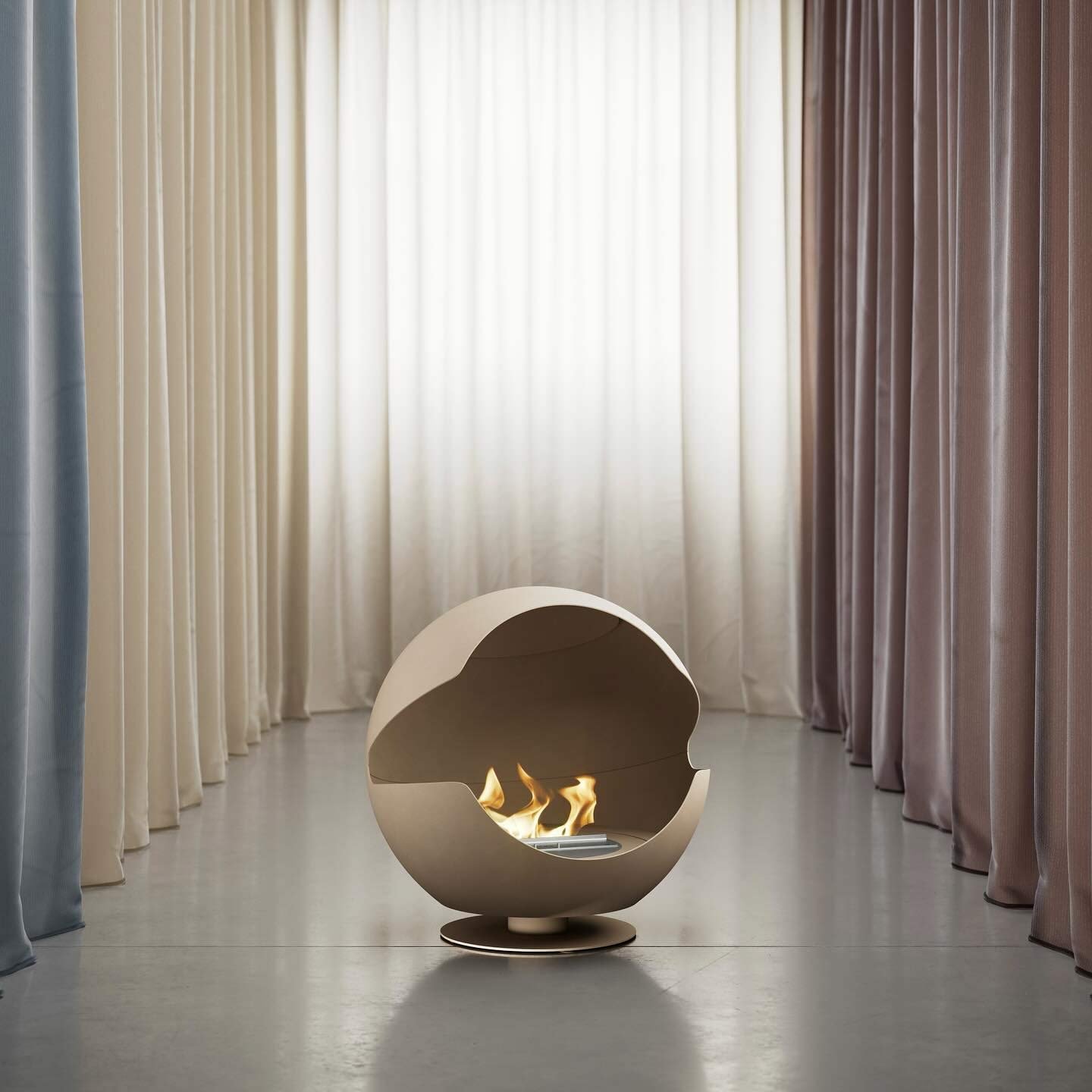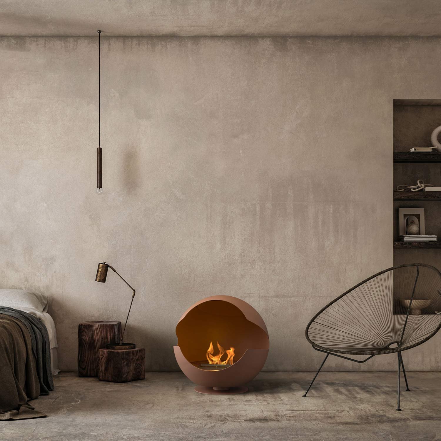 Globe de Vauni est une magnifique cheminée bioéthanol design, polyvalente et chauffante, conçue artisanalement en Suède.
