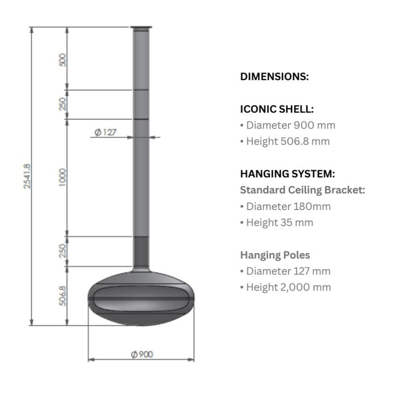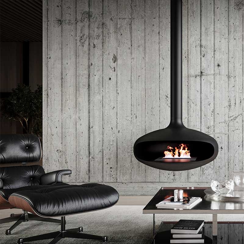 The Iconic est dotée de dispositifs de sécurité avancés, notamment un système de suspension sécurisé et un mécanisme de rotation stable, assurant à la cheminée une stabilité parfaite pendant que vous profitez de sa chaleur.