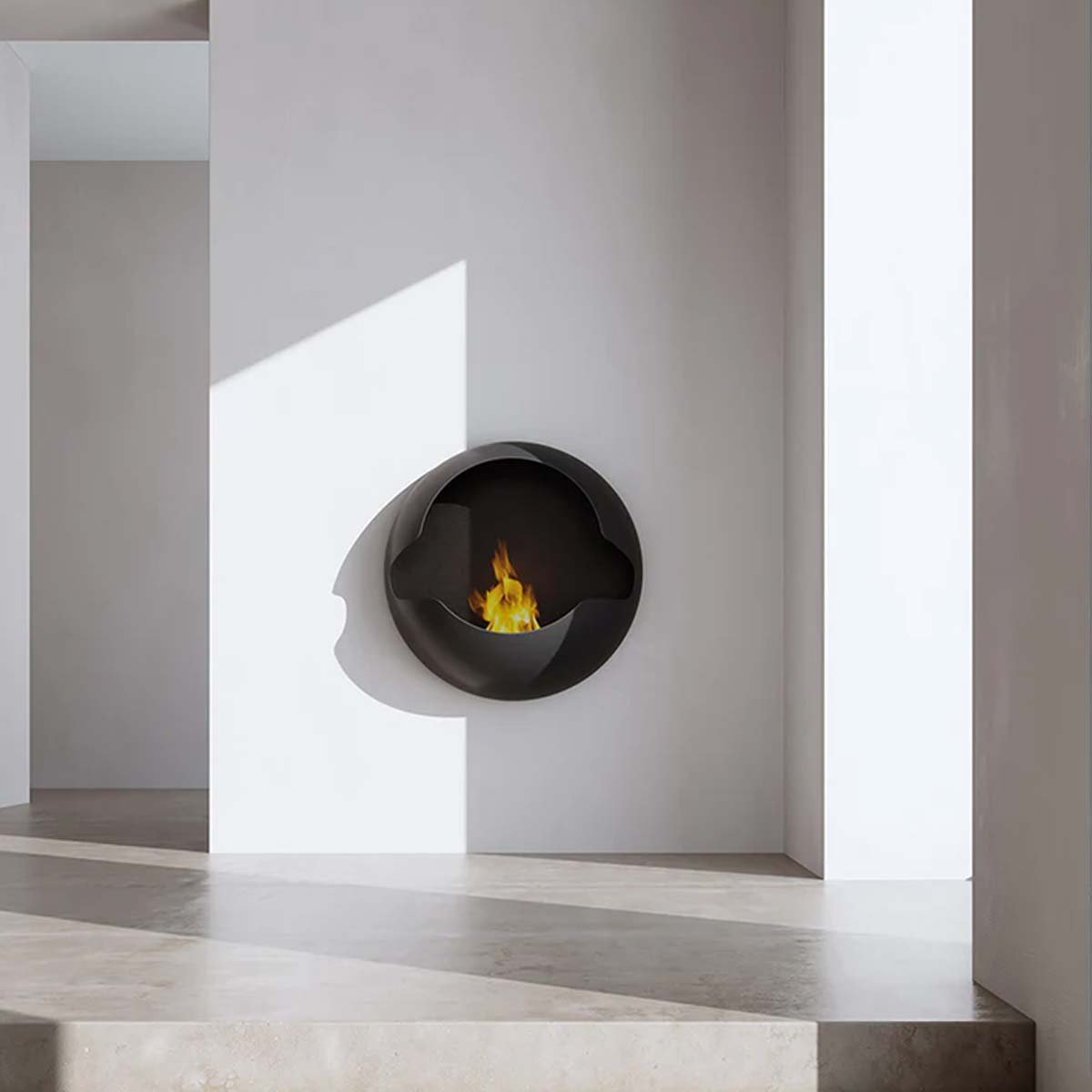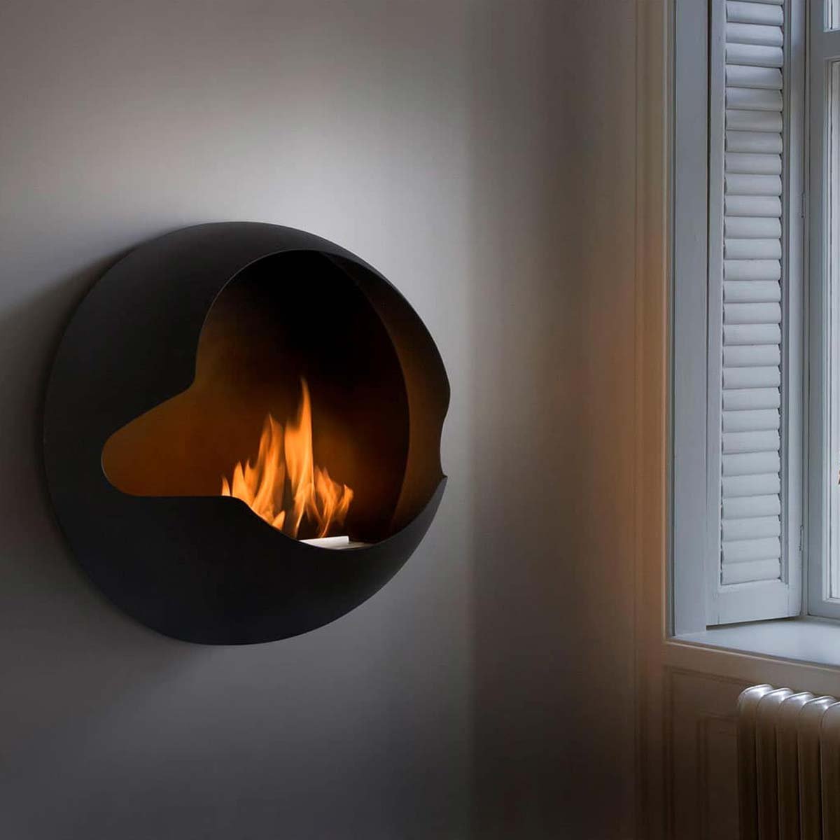 Cupola de la marque Vauni est une cheminée murale aux traits uniques disponible en 5 coloris de manteau, du blanc au noir, en passant par un gris métallique et un marron chaleureux. Design et efficace, elle ne laisse personne indifférent, particulièrement avec le magnifique contraste offert par le fond noir et les flammes !
