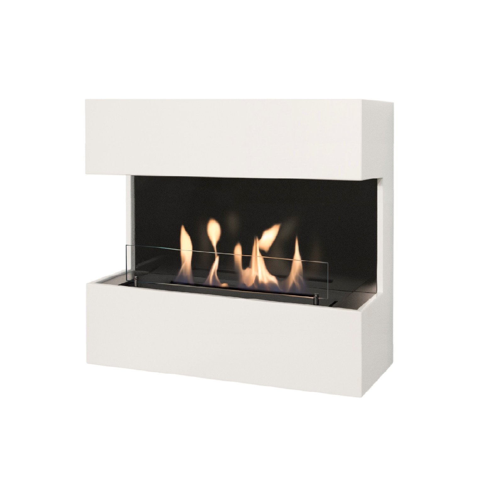 Lucca est une cheminée au bioéthanol murale au design raffiné. Son élégance est mise en avant grâce à sa structure en MDF blanc et à son panneau arrière laqué noir, qui accentuent la profondeur du foyer et des flammes.