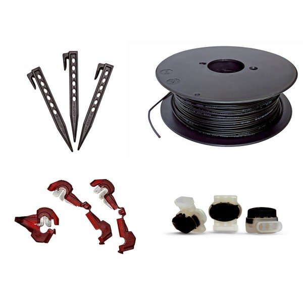 Pour installer votre robot tondeuse STIHL; vous avez besoin d’éléments spécifiques pour marquer le chemin qu’il devra suivre. Utilisez ce kit d’installation taille L; composé exclusivement de composants d’origine: * 400 mètres linéaires de câble périphérique (2 x 200 m) Ø2;3 mm * 375 piquets de fixation * 2 fiches de serrage de câble sur station de charge * 7 connecteurs de fil périmétrique Les fiches et connecteurs permettent de faire tous les raccordements nécessaires du câble à la station de charge; ainsi que raccords ou extension du câble périmétrique.