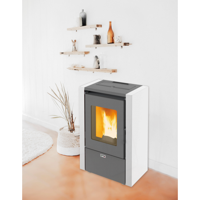 Le poêle à granulés Mignon s’intègre parfaitement dans tous les styles de décorations intérieurs avec son design moderne et son petit gabarit. Le plus : sa vitre sérigraphiée qui apporte une touche de légèreté et de modernisme supplémentaire au poêle.