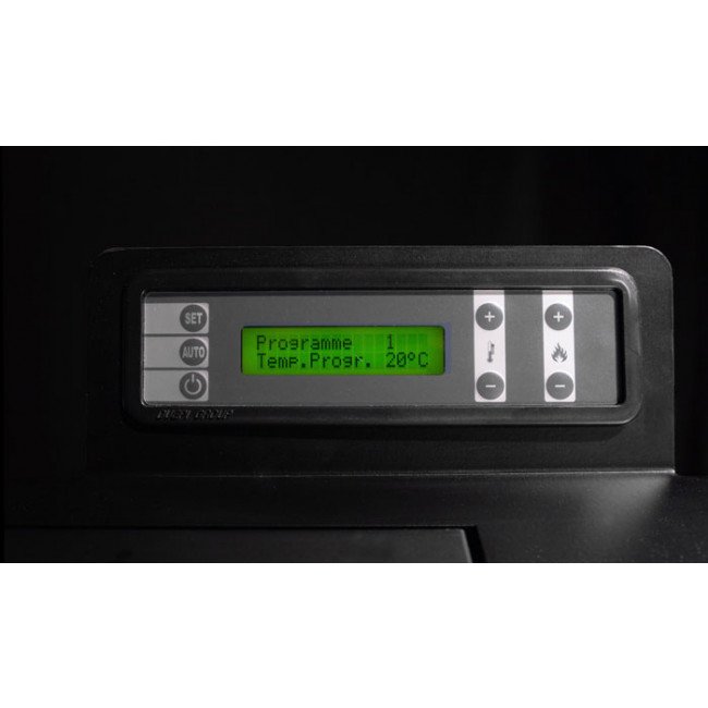 Ce poêle à pellets nouvelle génération est doté d’un tableau de commande simple d’utilisation situé sur le dessus de l’appareil qui permet de programmer votre chauffage sur 7 jours. Vous pourrez par exemple utiliser un programme de type :