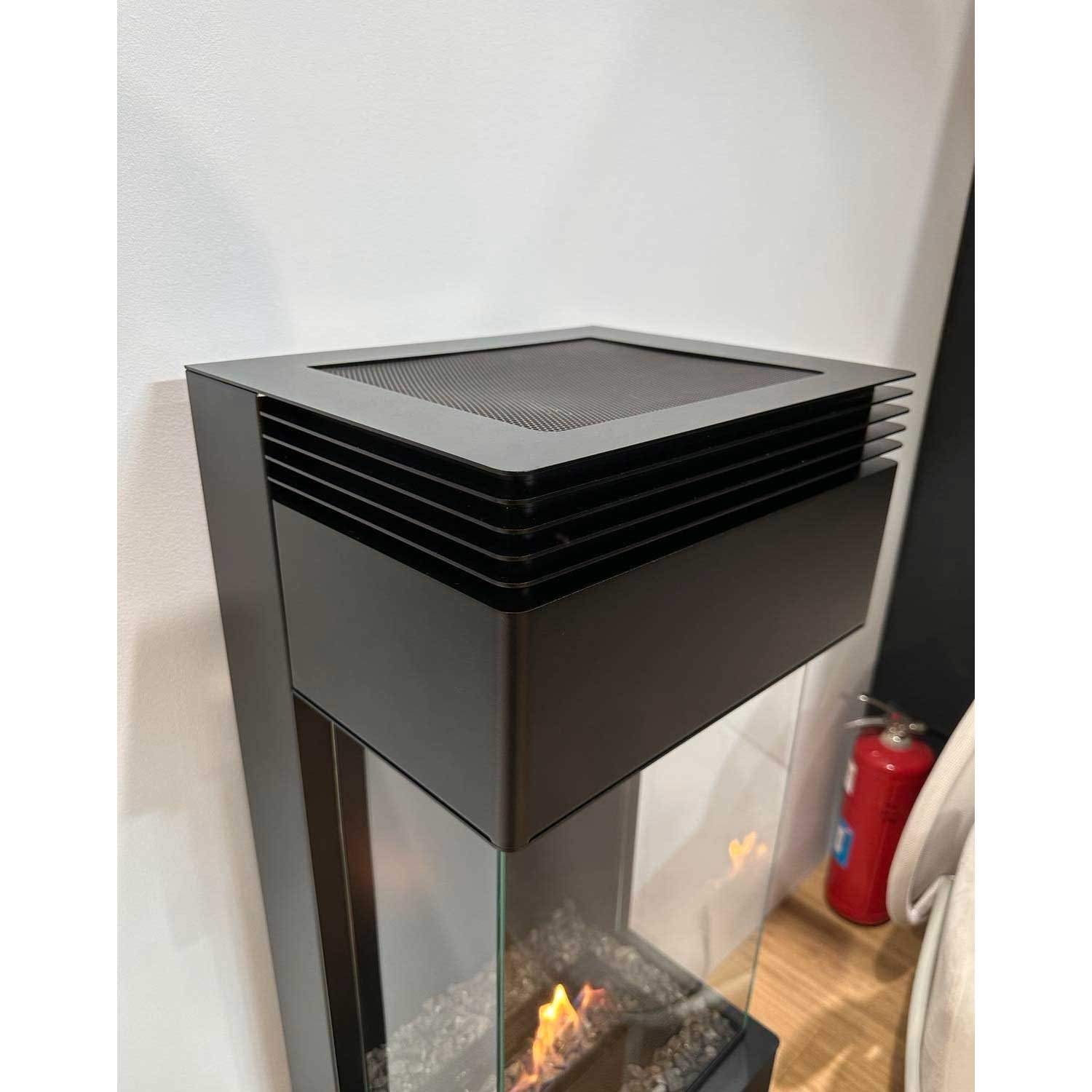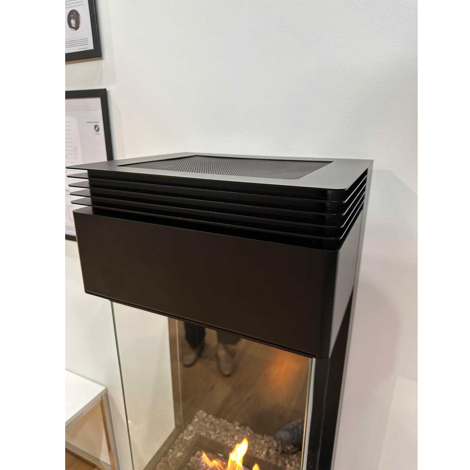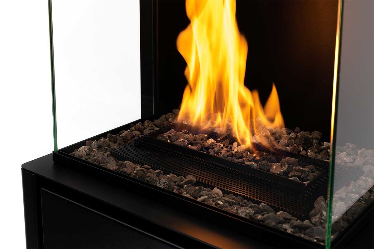 Polaris reprend les éléments caractéristiques des poêles conçus par Planika, avec un corps en acier galvanisé noir mat et une vue sur la flamme sublimée par une vitre en verre trempé. L’ensemble est une réussite incontestable. Grâce à un contraste de couleurs notable entre la structure et les flammes, la profondeur du foyer est largement mise en avant. Sur le sommet de l’appareil, des rainures décoratives et une hotte grillagée sont présentes, permettant à la chaleur de s’échapper pour se diffuser à travers la pièce.