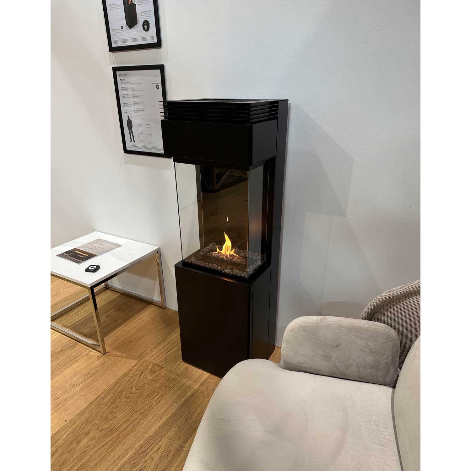 Polaris est doté de la technologie innovante BEV® brevetée par Planika et garantit une utilisation fiable et totalement sécurisée. Cette technologie sépare la flamme de l’éthanol et ce sont en réalité les vapeurs de ce dernier qui alimentent la flamme. De plus, Polaris est certifié « Zero émission » pour une combustion propre et écologique. Une télécommande et un panneau de commandes intégré accompagnent le poêle, offrant la possibilité d’allumer, d’éteindre et de régler la hauteur de la flamme sur 2 niveaux distincts.