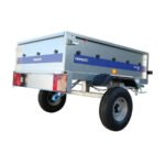 Cette remorque vous est livrée entièrement montée et possède des garde-boue en plastique, un timon droit, une ridelle arrière amovible et rabattable.